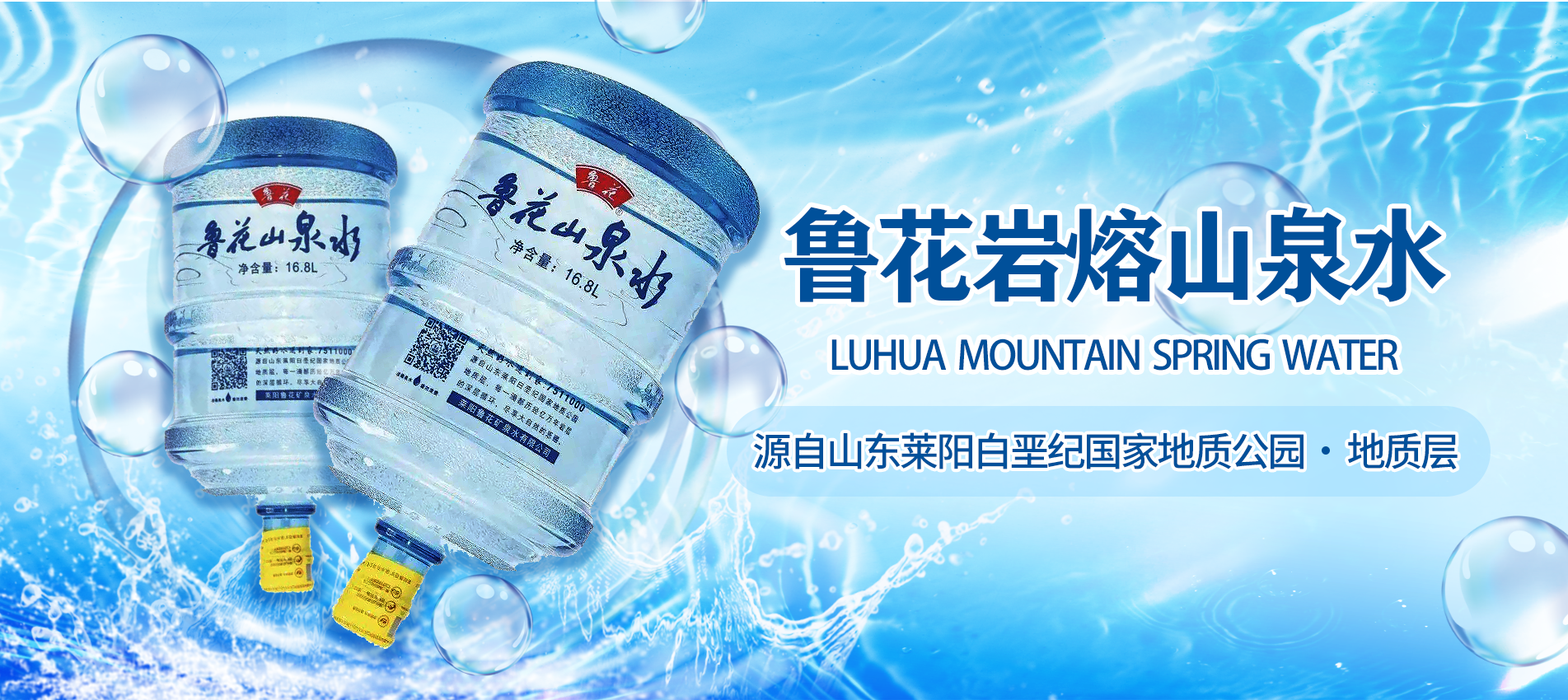 “鲁花山泉水”水源地,位于中国第一恐龙的故乡—莱阳白垩纪国家地质公园。泉水属于承压的裂隙岩溶天然上升泉,受大气降水补给,通过断裂构造破碎带进行长时间的深循环,在含水层中的滞留时间达到十年以上,通过溶解围岩中的矿物质形成宝贵的泉水资源。